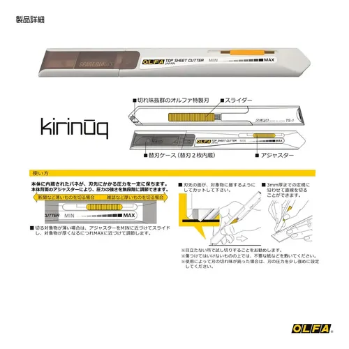 El Cuchillo Olfa Ts-1 es un instrumento de corte de precisión, diseñado para controlar la profundidad de corte. Este cuchillo es ideal para realizar cortes en revistas y periódicos, así como para efectuar dobleces profesionales. Su color blanco le da un aspecto limpio y profesional, y su mango está hecho de plástico ABS, un material resistente y duradero. El ancho de la hoja es de 6 mm, lo que permite realizar cortes precisos y limpios. Este cuchillo tiene una capacidad de almacenamiento de hojas de 2, lo que significa que siempre tendrás un repuesto a mano. Además, incluye dos hojas de repuesto del modelo TSB-1, por lo que no tendrás que preocuparte por comprar repuestos durante un buen tiempo. Este cuchillo viene en un pack de una unidad, perfecto para profesionales que necesitan una herramienta de corte confiable. Además, cuenta con una traba de seguridad, lo que lo hace seguro de usar y evita accidentes. Con el Cuchillo Olfa Ts-1, tendrás la herramienta perfecta para todos tus trabajos de corte de precisión.