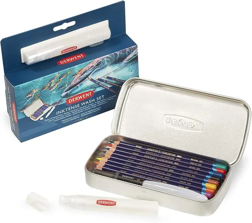 EL set incluye : 8 lapices derwent inktense, rociador, pincel de agua y pincel para pintar