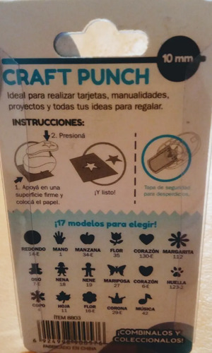Perforadora con forma especial para perforar papel, cartulinas y goma eva. Medida 8 mm. Modelos: Circulo
