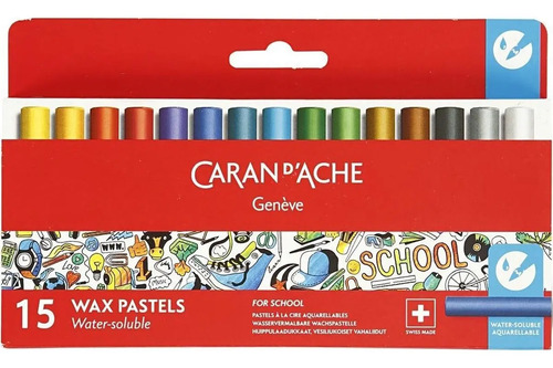 Pasteles Cera Acuarelables Caran Dache School X 15 Unidades