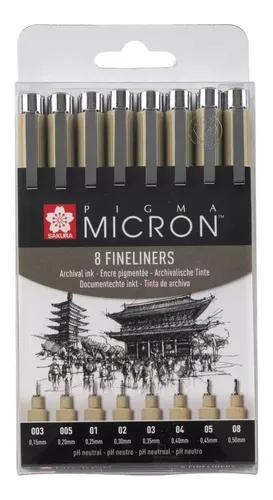 Sakura Pigma Micron 8 Microfibras Negras Set
