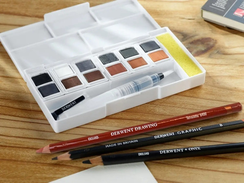 Set de Acuarelas y Lapices Derwent de colores sombras y tonos medios