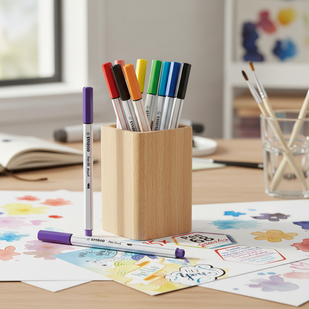 Este conjunto de marcadores Pen 68 de Stabilo es ideal para cualquier actividad artística o proyecto creativo. La lata incluye 15 marcadores de colores intensos y brillantes, perfectos para dibujar, ilustrar o escribir con una calidad excepcional. La punta media de estos marcadores es robusta y permite tanto trazos finos como gruesos, adaptándose a diferentes técnicas y estilos.
