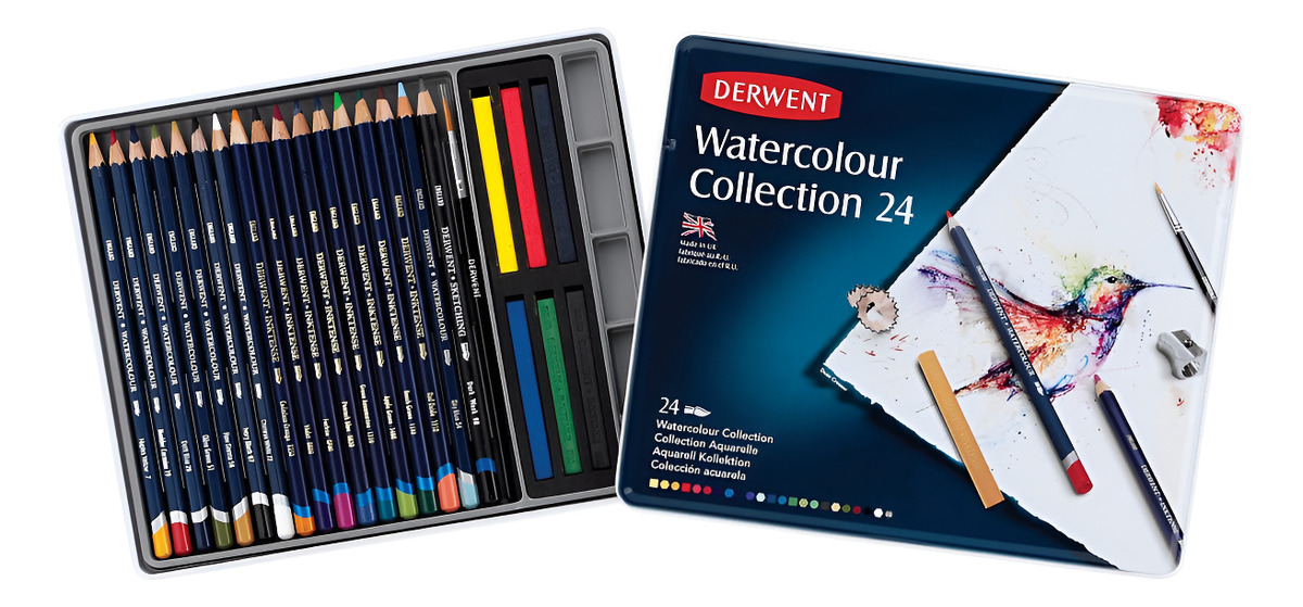 Contiene 16 Lapices Acuarelables, 1 Lapiz Negro, 1 Pincel, 6 Barras de tinta