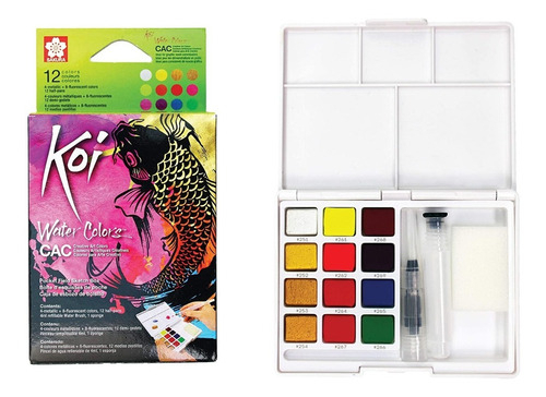 El Estuche 12 Acuarelas Sakura Koi Metalicas Neon + Pincel es el complemento perfecto para los amantes del arte y la creatividad. Con su diseño innovador y colores metálicos y fluorescentes, este set de acuarelas te permitirá dar vida a tus obras con un toque único y vibrante.