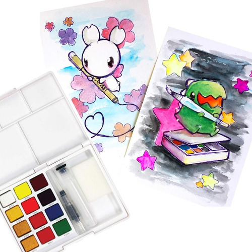 Cada estuche contiene 12 unidades de acuarelas Sakura Koi, en presentaciones de 3 fl oz, lo que te brinda una amplia variedad de tonalidades para explorar y experimentar. Además, incluye un pincel de alta calidad que te permitirá aplicar las acuarelas con precisión y control.