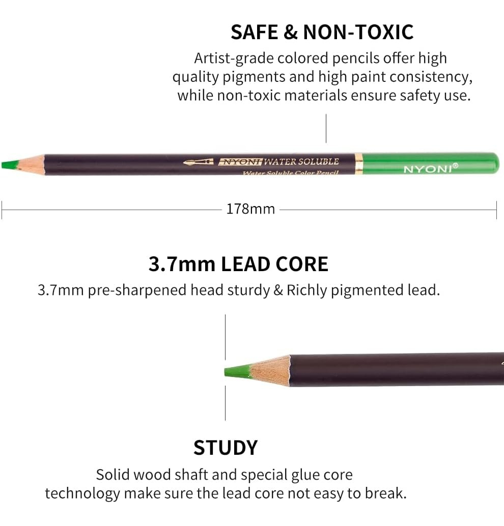 El kit de 100 lápices de acuarela Nyoni Metal Box es un juego de alta calidad, perfecto para artistas, estudiantes y entusiastas del arte. Con un grado de 2B, estos lápices de acuarela permiten una aplicación suave y rica en pigmentos, proporcionando colores vibrantes e intensos. La robusta y elegante funda de metal protege los lápices, lo que los hace fáciles de transportar y organizar. Cada paquete contiene 100 unidades, que ofrecen una amplia gama de colores para explorar tu creatividad. La marca Nyoni es reconocida por su calidad y durabilidad, lo que convierte a este kit en una excelente opción para todas tus necesidades de dibujo y pintura.