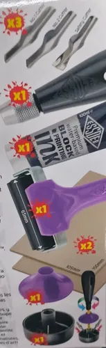 Este kit proporciona las herramientas y los materiales esenciales que necesita para crear sus propias impresiones, incluidos los bloques de talla SoftCut fáciles de tallar y nuestra innovadora cortadora de seguridad, ambas ideales para principiantes.