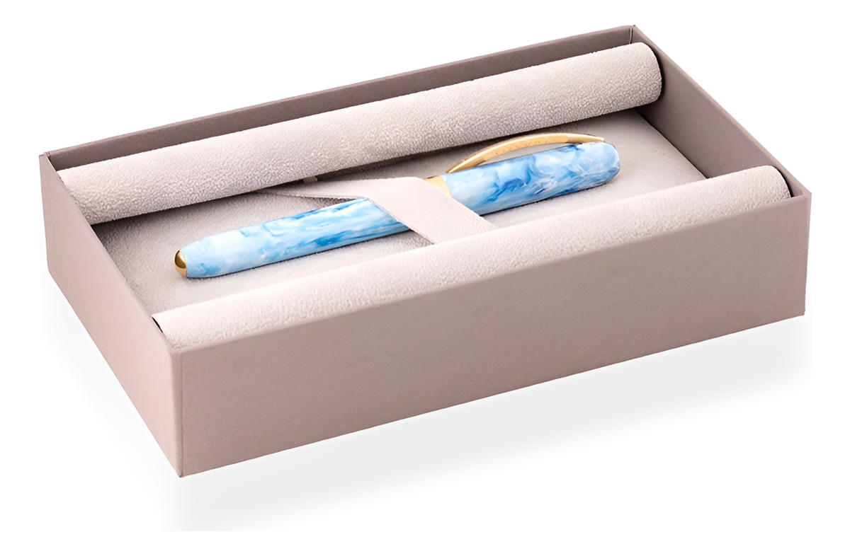 Cada pluma presenta adornos especiales y resinas de colores diseñados específicamente para expresar la imaginería propia de cada uno de los reinos de Dante. Paradiso (Cielo) es un celeste celeste con adornos de oro amarillo, que simboliza la luz sagrada y la alegre nobleza del paraíso.