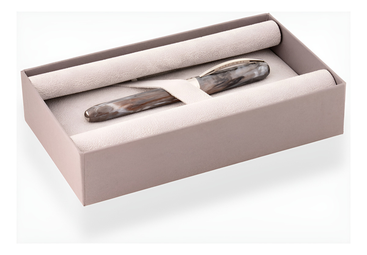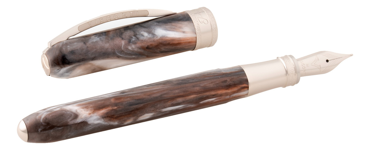 Incluye un convertidor y acepta cartuchos internacionales estándar, cortos y largos. Además, incorpora el plumín de acero Visconti (igual que el de la Visconti Mythos), chapado a juego con el embellecedor