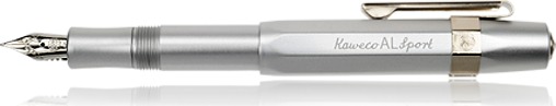 Pluma de bolsillo de plata pluma en plata con punta de acero y punta de iridio para los cartuchos de tinta. Versión cerrada tiene una longitud de tan sólo 10,5 cm y 13,5 cm abierta versión. Disponible con y sin clip. Piezas de alto valor y sólidos ALU de producción CNC, pulido a mano. Color: Azul – Plata – Peltre