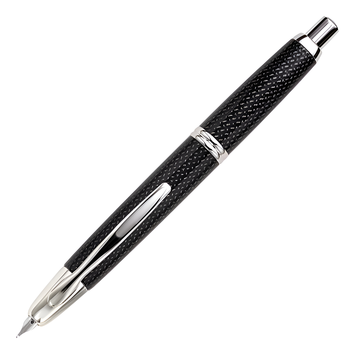 Una pluma estilográfica disponible exclusivamente para el mercado japonés. La pluma es un modelo de sentido práctico y elegante belleza. Es parte de una serie pluma estilográfica retráctil. La pluma fuente se mantiene a salvo a través de un impresionante mecanismo retráctil, no hay un límite para desenroscar o despegar! El diseñador de la pluma ha pensado diligentemente la estructura sin tapa para crear una hermosa obra de arte.