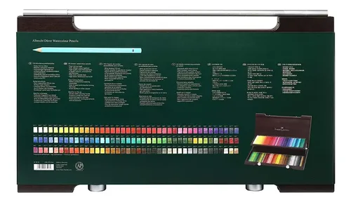 Sumérgete en el mundo del color con los Lápices Acuarelables Faber-Castell Albrecht Durer. Este set de 120 lápices, alojados en una elegante caja de madera, te ofrece una amplia gama de tonalidades para dar vida a tus creaciones. Cada lápiz está diseñado para proporcionar una aplicación suave y una mezcla de colores excepcional, permitiéndote explorar una variedad de técnicas de acuarela. Los lápices Faber-Castell son reconocidos por su calidad superior y durabilidad, asegurando que cada trazo sea preciso y vibrante. Ideal para artistas, estudiantes y entusiastas del arte, este set de lápices acuarelables es una herramienta esencial para cualquier proyecto creativo.