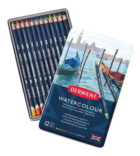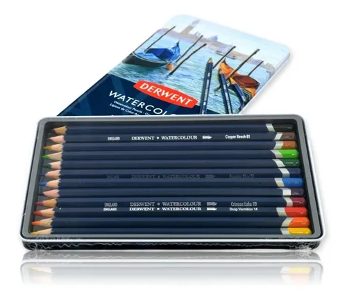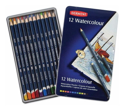 12 lapices Derwent Watercolour (Acuarelables) en Caja Metálica
