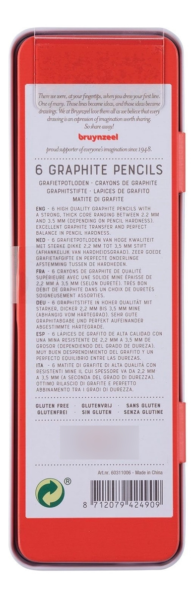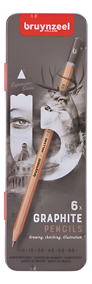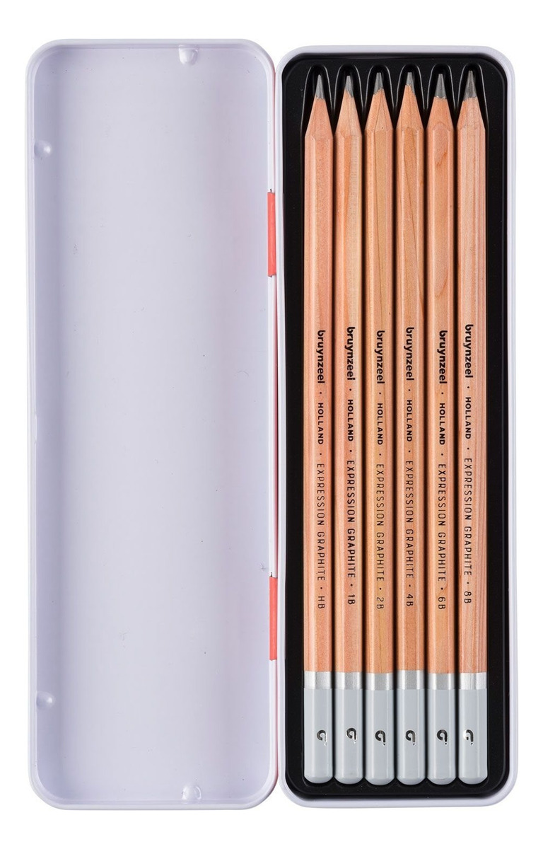 Caja de metal . 6 lapices grafito de HB a 8B