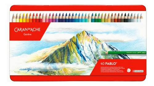 Caja metalica de Lapices Caran D´Ache Pablo resistentes al agua x 40 uni.
