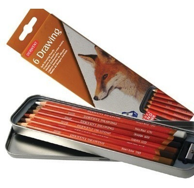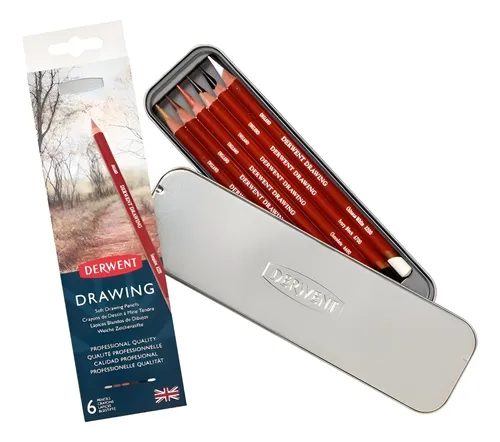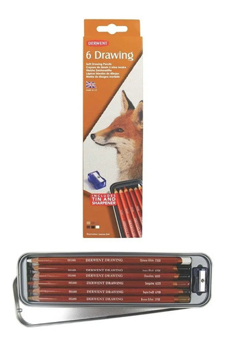 Lapices Derwent Drawing X 6 + Sacapuntas Caja Metalica