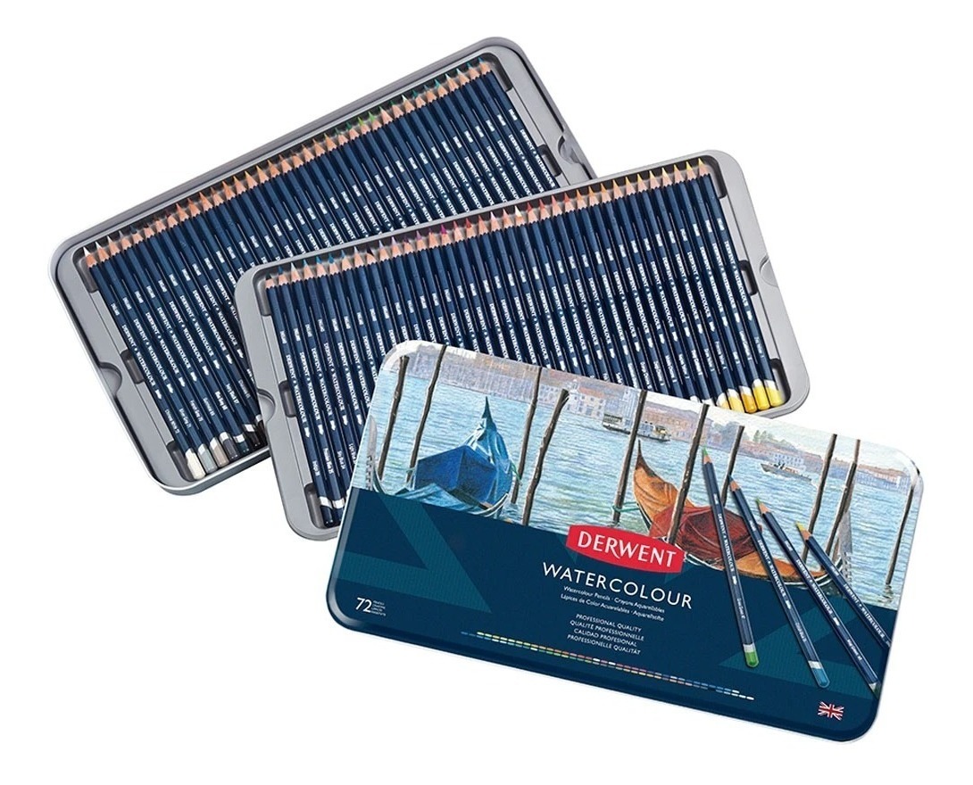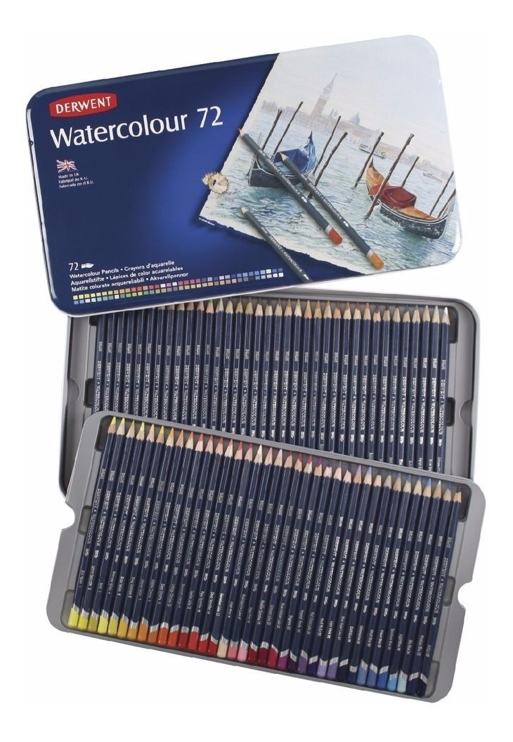 72 lapices acuarelables derwent en caja metálica