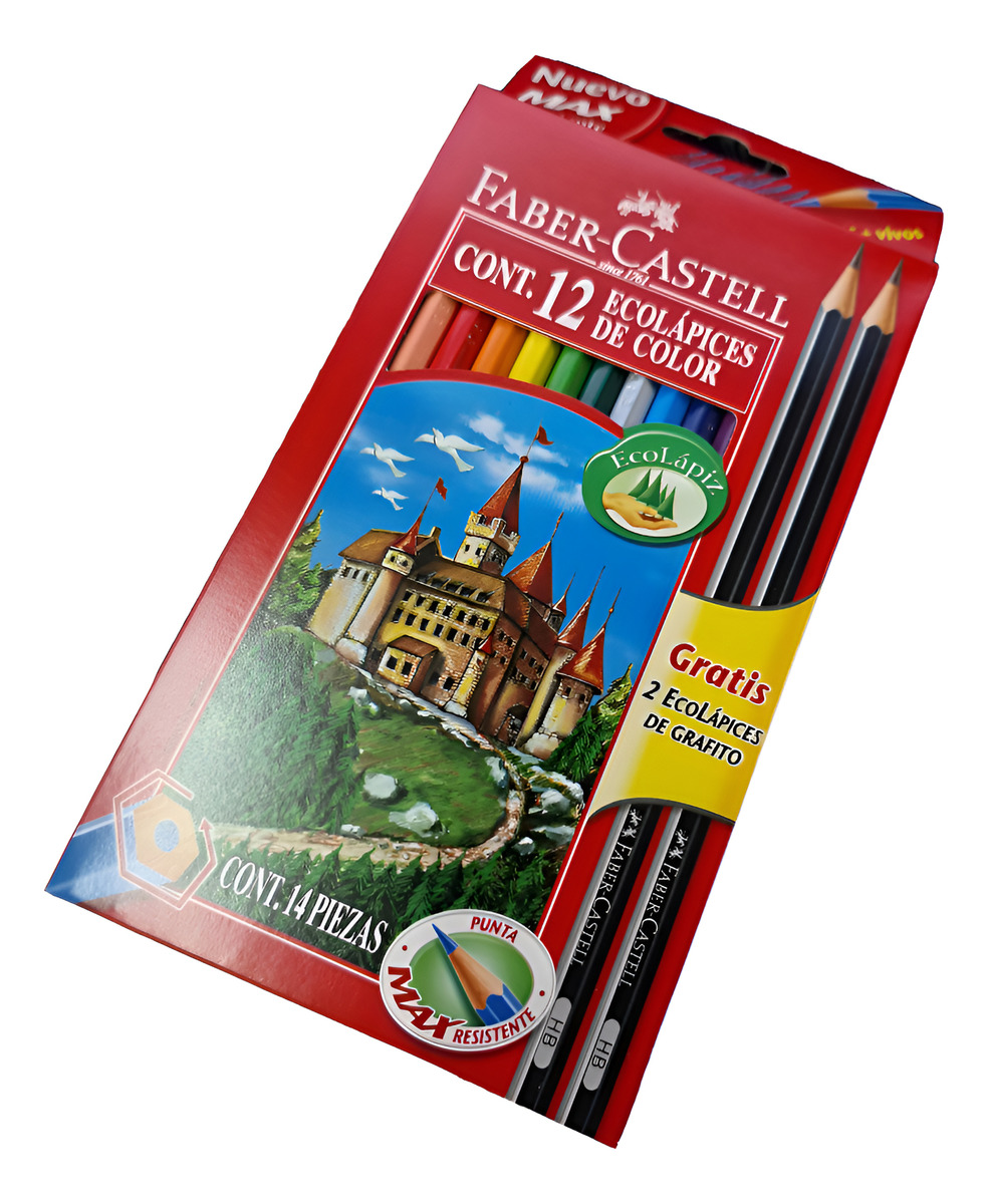 12 lapices de color Faber Castell + 2 lapices de grafito