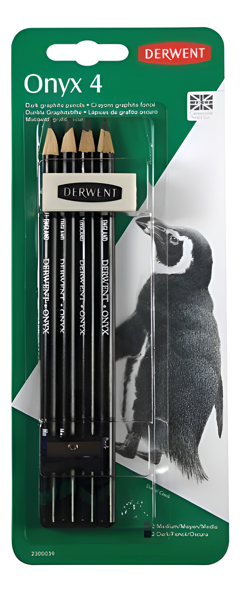 Lapices Grafito Derwent Onix x 4 (2 Dark + 2 Medium) + Goma + Sacapuntas