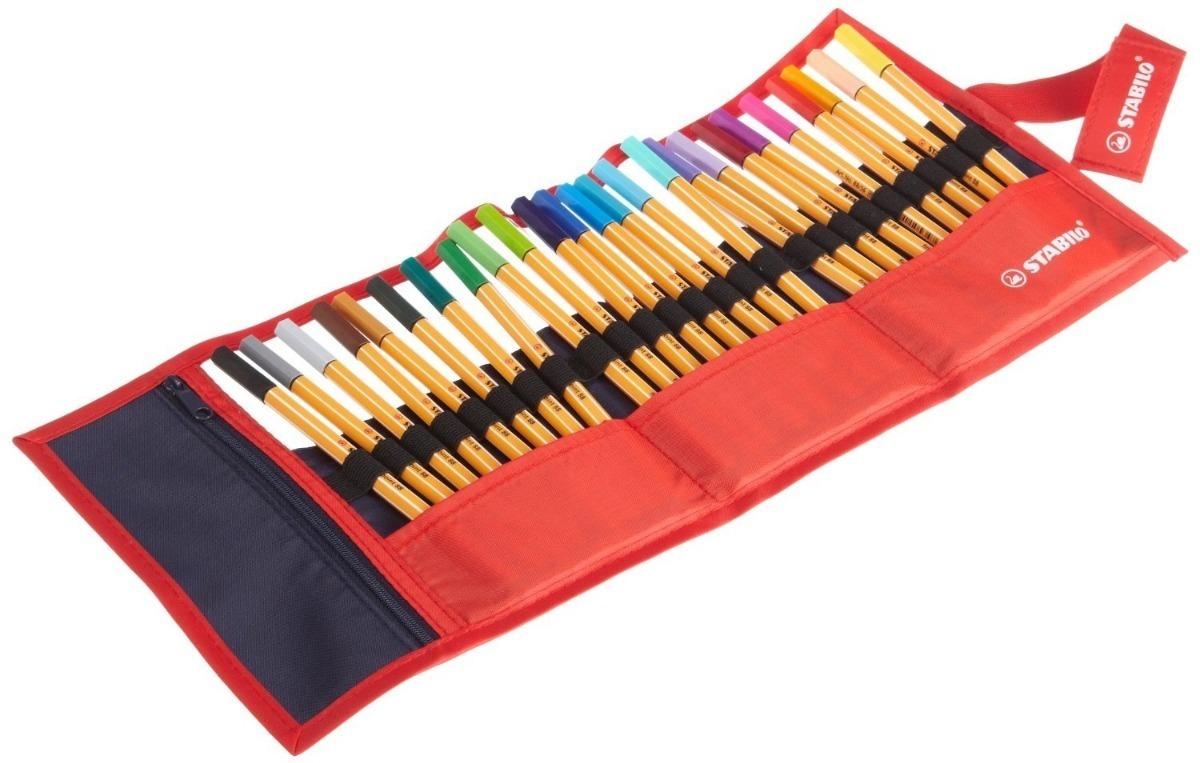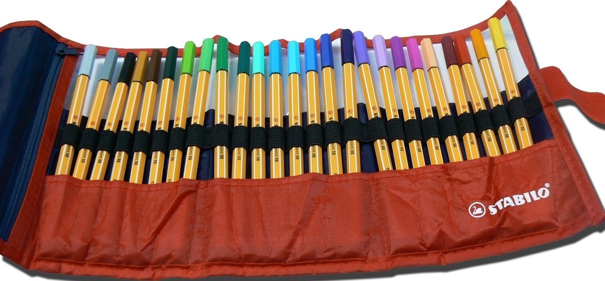 25 microfibras stabilo point 88 0.4 mm en cartuchera roller