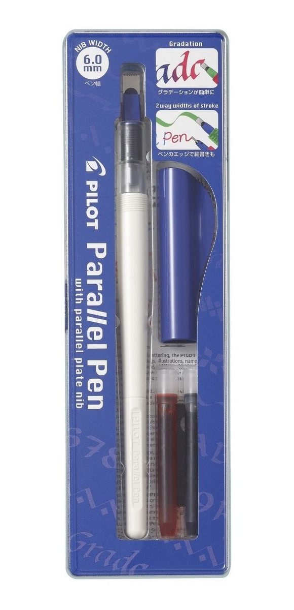 Un gran avance en el diseño de pluma de caligrafía, esta pluma cuenta con una punta que consiste en dos placas paralelas, permitiendo que el escritor para producir líneas más nítidas que las plumas de caligrafía existentes. Cartuchos de tinta se pueden cambiar en la pluma para crear líneas de color gradated y colores mezclados. Cada juego viene con una pluma en paralelo, un negro y un cartucho de tinta de color rojo, un convertidor para limpiar la pluma y un limpiador de punta. Este lápiz de caligrafía es rellenable. .