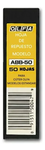 El producto que presentamos es el Repuesto Cuchillas Olfa ABB-50 Black X 50 Cuchillas. Este producto es de la reconocida marca Olfa, famosa por su calidad y durabilidad. El color del producto es el que se muestra en la foto, un elegante y sobrio negro que le da un toque profesional. El ancho de la hoja de cada cuchilla es de 9 mm, lo que permite cortes precisos y limpios. El modelo de este repuesto es el ABB-50, uno de los más populares y demandados de la marca. Este pack incluye 50 hojas de repuesto, lo que garantiza una larga vida útil y la posibilidad de realizar numerosos trabajos sin preocuparse por quedarse sin cuchillas. Cada pack contiene 50 unidades, lo que lo hace ideal para profesionales que necesitan una gran cantidad de repuestos a mano. El tipo de cutter para el que están diseñadas estas cuchillas es el plegable, lo que permite un fácil y seguro almacenamiento. En resumen, este producto combina calidad, cantidad y funcionalidad en un solo paquete.