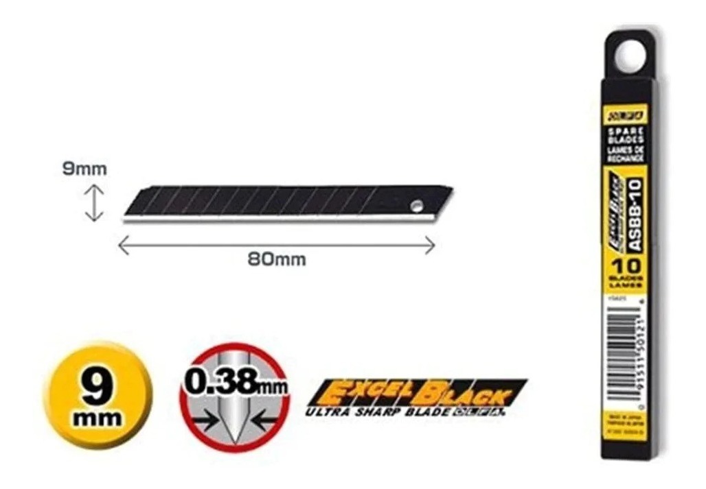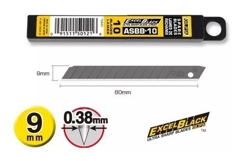 Repuesto Olfa Cuchillas Asbb Negra 9mm X10 U