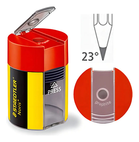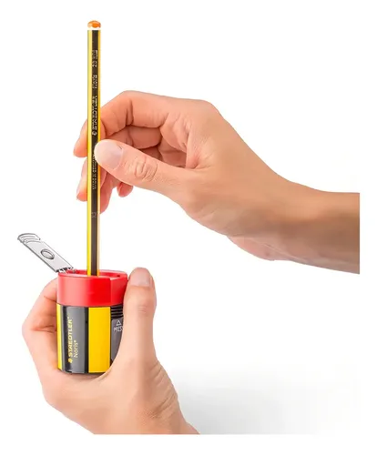 Además, este sacapuntas Staedtler Noris cuenta con una cobertura bisagra que evita el derrame de virutas, manteniendo su espacio de trabajo limpio y ordenado. Su depósito incorporado es práctico y fácil de vaciar, lo que añade a su conveniencia.