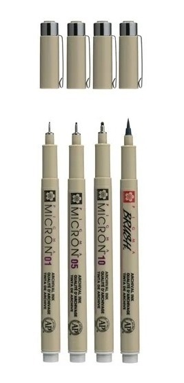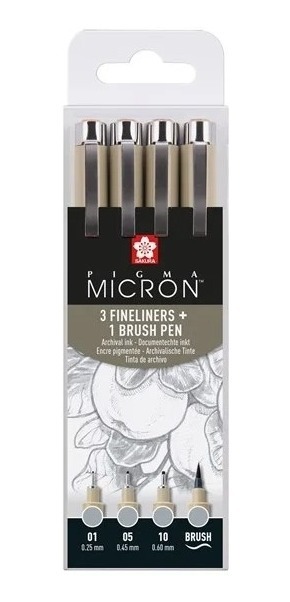 Sakura Pigma Micron 3 Microfibras Gris Claro Set + 1 Brush