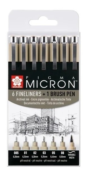 Sakura Pigma Micron 6 Microfibras Negras+ 1 Brush Set
