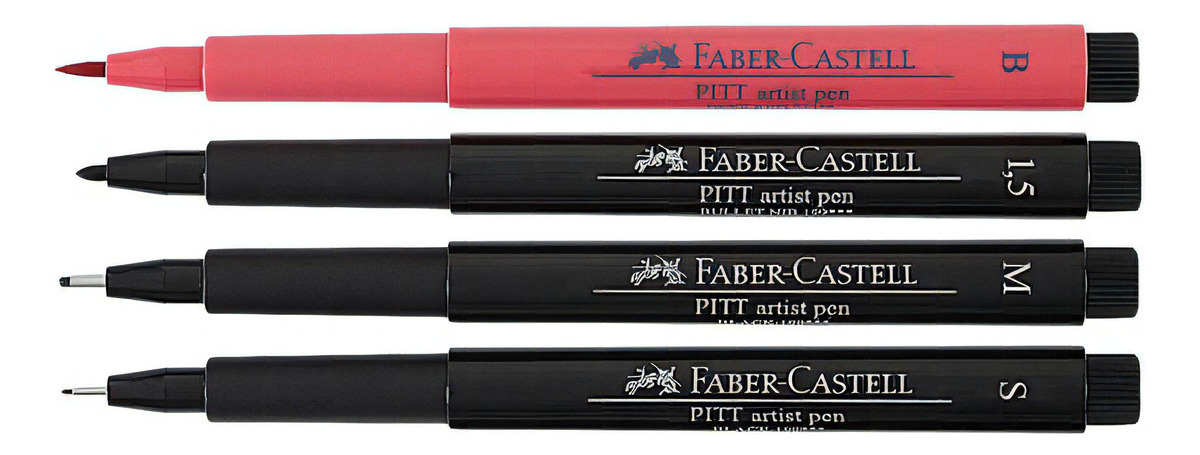 Set 4 Rotuladores Negro/rojo Profesionales Faber Castell