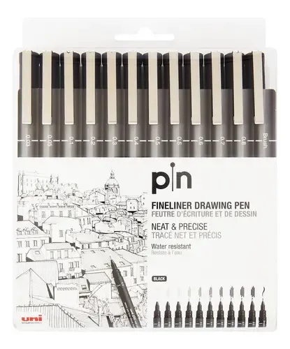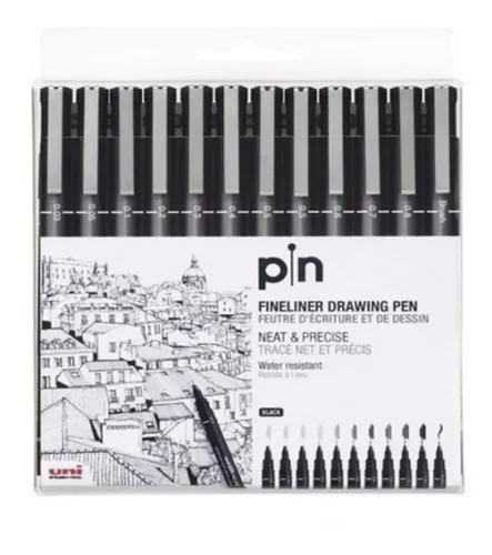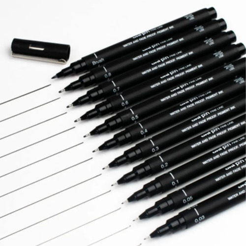 Uni Pin 200 Black Tinta Pigmentada 0,03 Al 0,8 Mm + Brush
