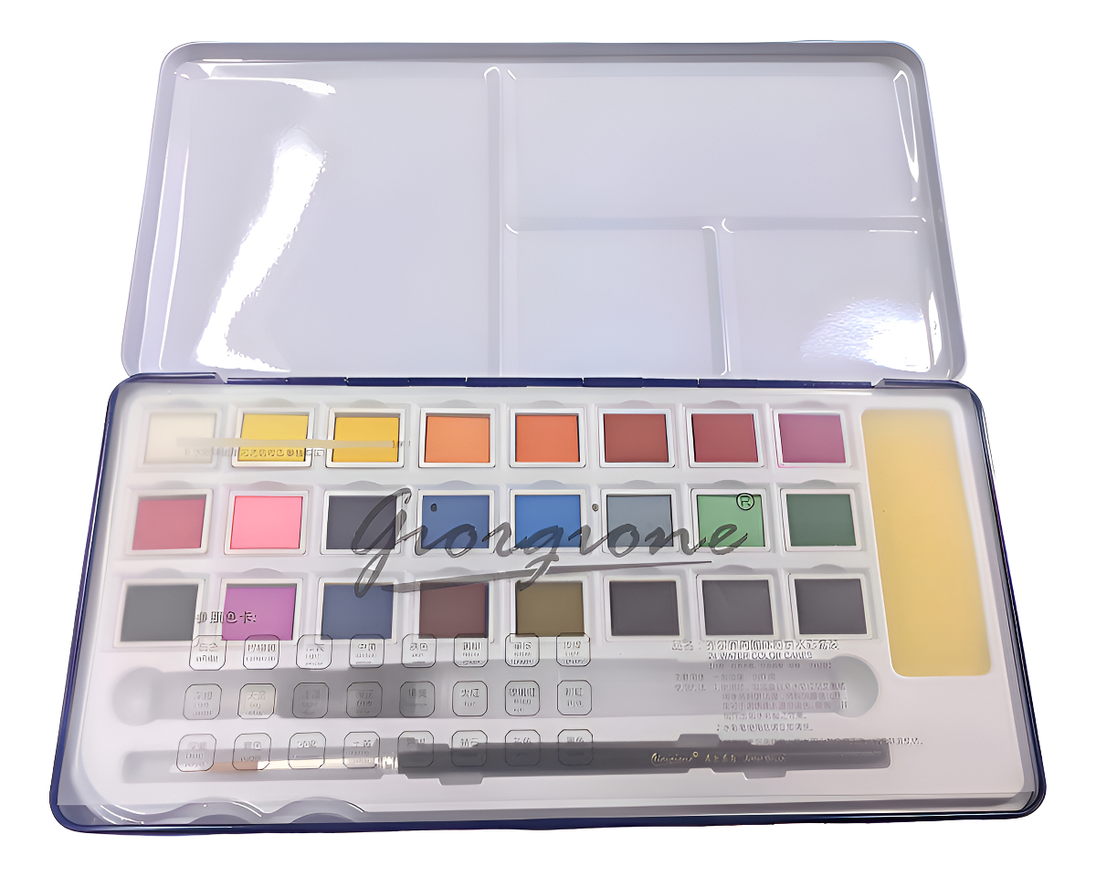 Set De 24 Acuarelas Profesionales Giorgione En Lata Con 6 Hojas de 300g Y 2 Pinceles