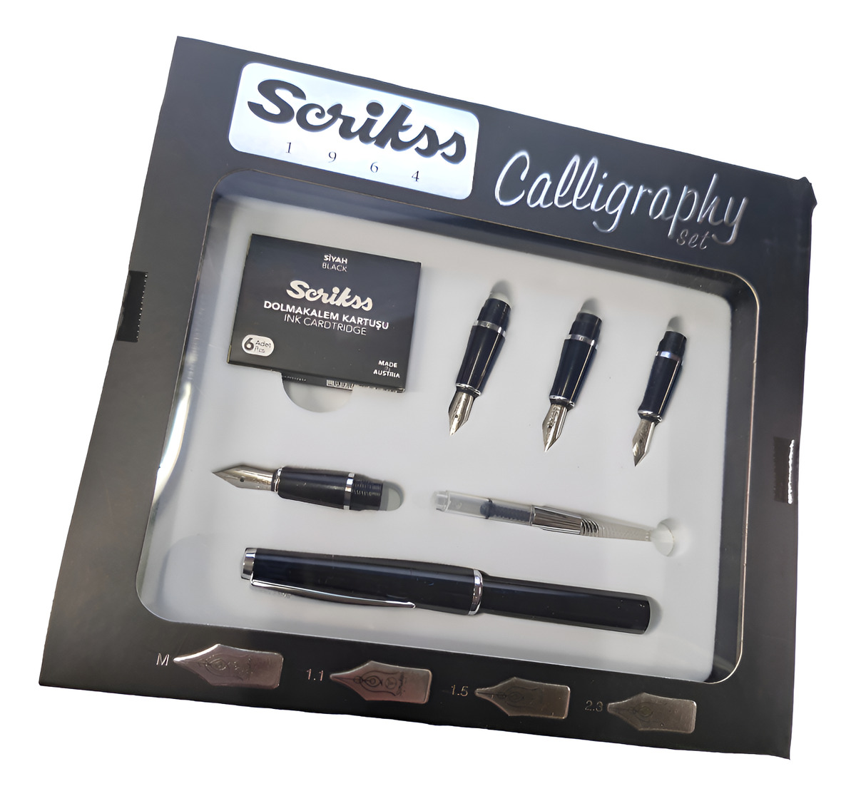 Set de Caligrafia compuesto por Cuerpo de Lapicera , 4 plumas (M, 1.1, 1.5, 2.3) , convertidor, cartuchos