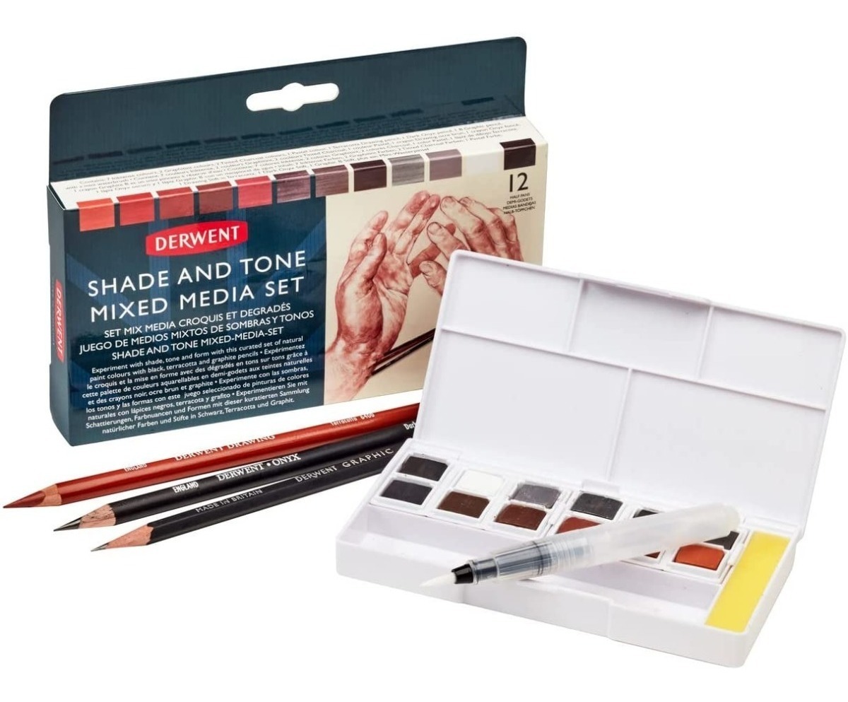 Set de Acuarelas y Lapices Derwent de colores sombras y tonos medios