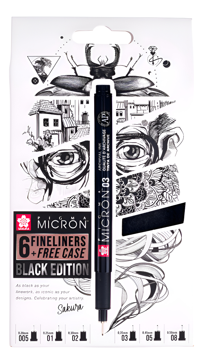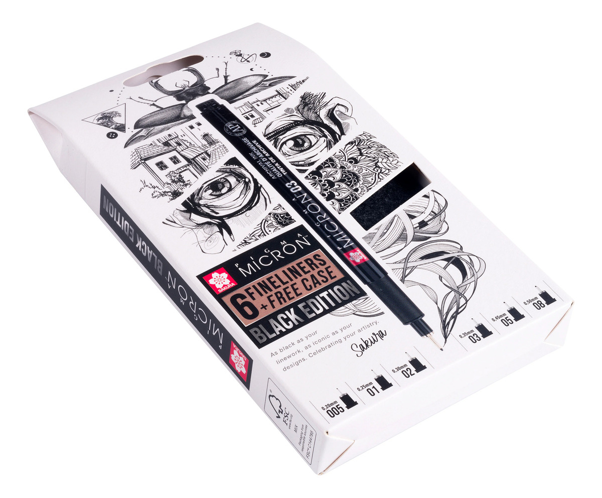 Set Microfibras Pigma Micron Black Edition X 6 + Estuche