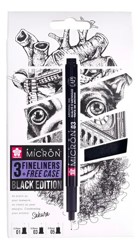 Set Pigma Micron x 3 microfibras + estuche Black Edition