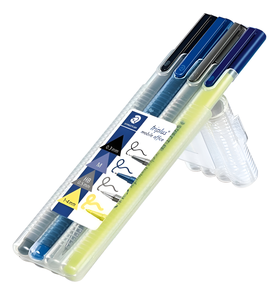 Portaminas 0.5 mm + Bolígrafo + Resaltador + Microfibra Negra