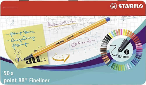 Stabilo Microfibra Point 88 x 50 unidades . Caja Metálica