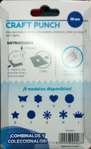 Perforadora con forma especial para perforar papel, cartulinas y goma eva. Medida 38 mm Modelo: Corona