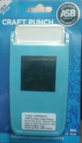 Troqueladora Cuadrado Todo Terreno Asb 38 Mm. perfora : Goma eva: 2 mm, Cartón: 1 mm, Plancha de iman, Corcho: 2 mm. Madera balsa: 1 mm, Hojas de PVC y PP: 0.5 mm