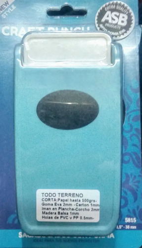 Troqueladora Margarita Todo Terreno Asb 38 Mm. Perfora Goma eva: 2 mm, Cartón: 1 mm, Plancha de iman, Corcho: 2 mm, Madera balsa: 1 mm, Hojas de PVC y PP: 0.5 mm
