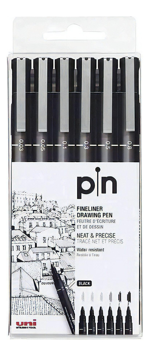 Uni Pin Fineliner Set X 6 Unidades Negro