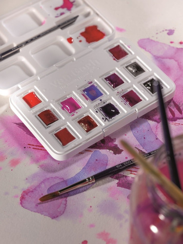 En la versión Pinks & Violets, incluye 12 medias sartenes en los colores: Carmine 318, madderlake light 327, madder deep 331, rose 357, quinacridona rosa 366, rosa oscuro 373, lavanda 525, violeta oscuro 560, violeta rojo permanente 567, violeta azul permanente 568, quinacridona púrpura rojo 592, quinacridona púrpura azul 593.